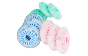TPU具有較高的機械強度、卓越的耐磨性、優良的耐油、耐酸堿、突出的抗壓縮性及使得其在滾輪上有大量應用,在國內只要應用于工業滾輪、家用滾輪、運動器材輪、醫療器械輪、玩具輪。